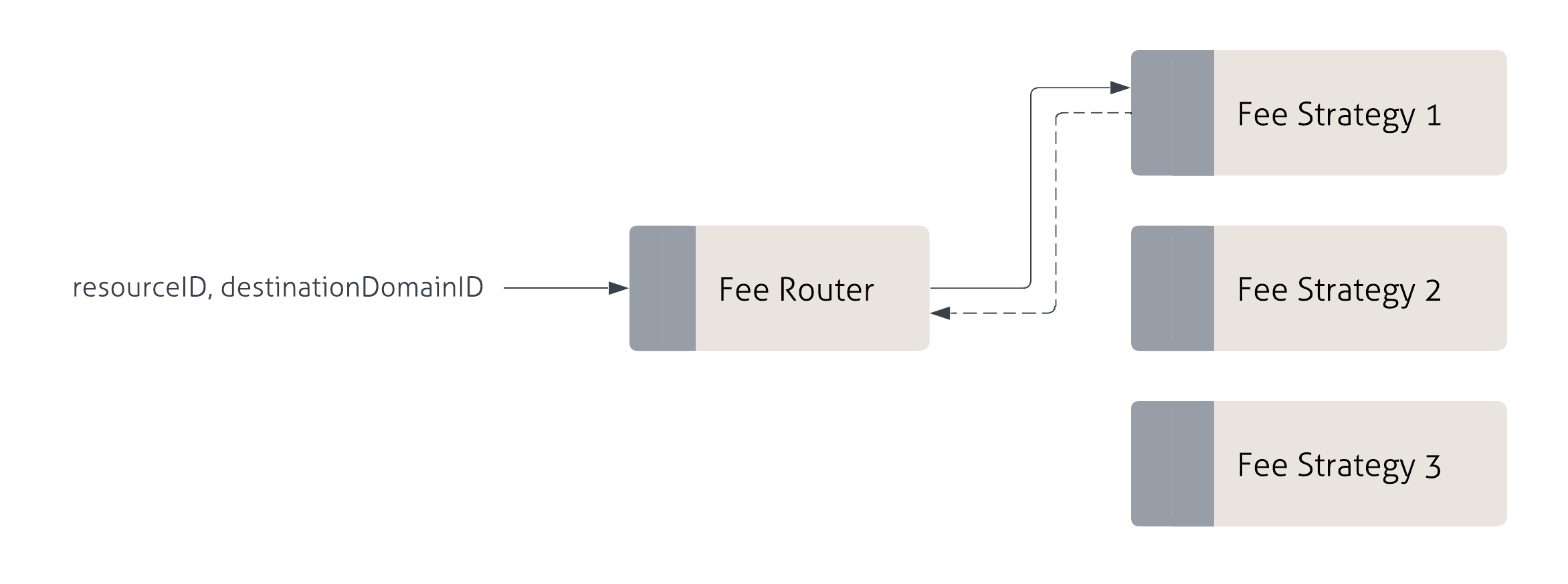 Each resource is assigned a fee strategy for every potential destination network (i.e. domain), where the mapping between the fee strategy and the domain outlines all potential bridging routes for a given resource. The fee strategy defines the set of rules on how fees should be charged when executing deposits on the source chain.
